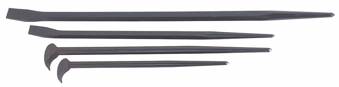 Pry and aligning bar with a pointed taper and 90 rolling head for leverage high alloy steel is heat treated the entire length and black oxide treated for added strength and durability range.